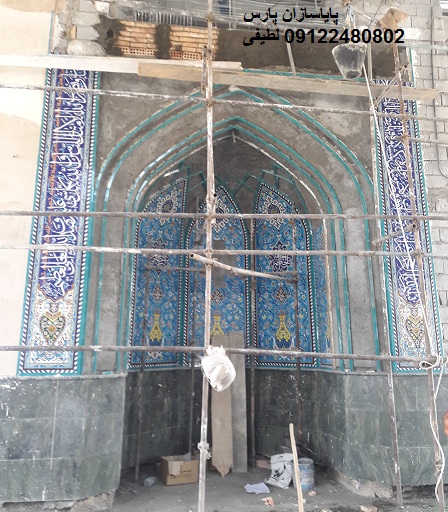 گنبد کاشی و گلدسته بتنی / کاشی کاری مسجد